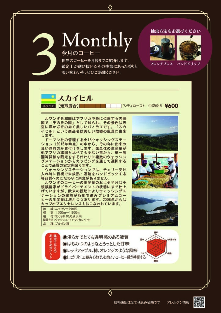 3月のマンスリーコーヒーは